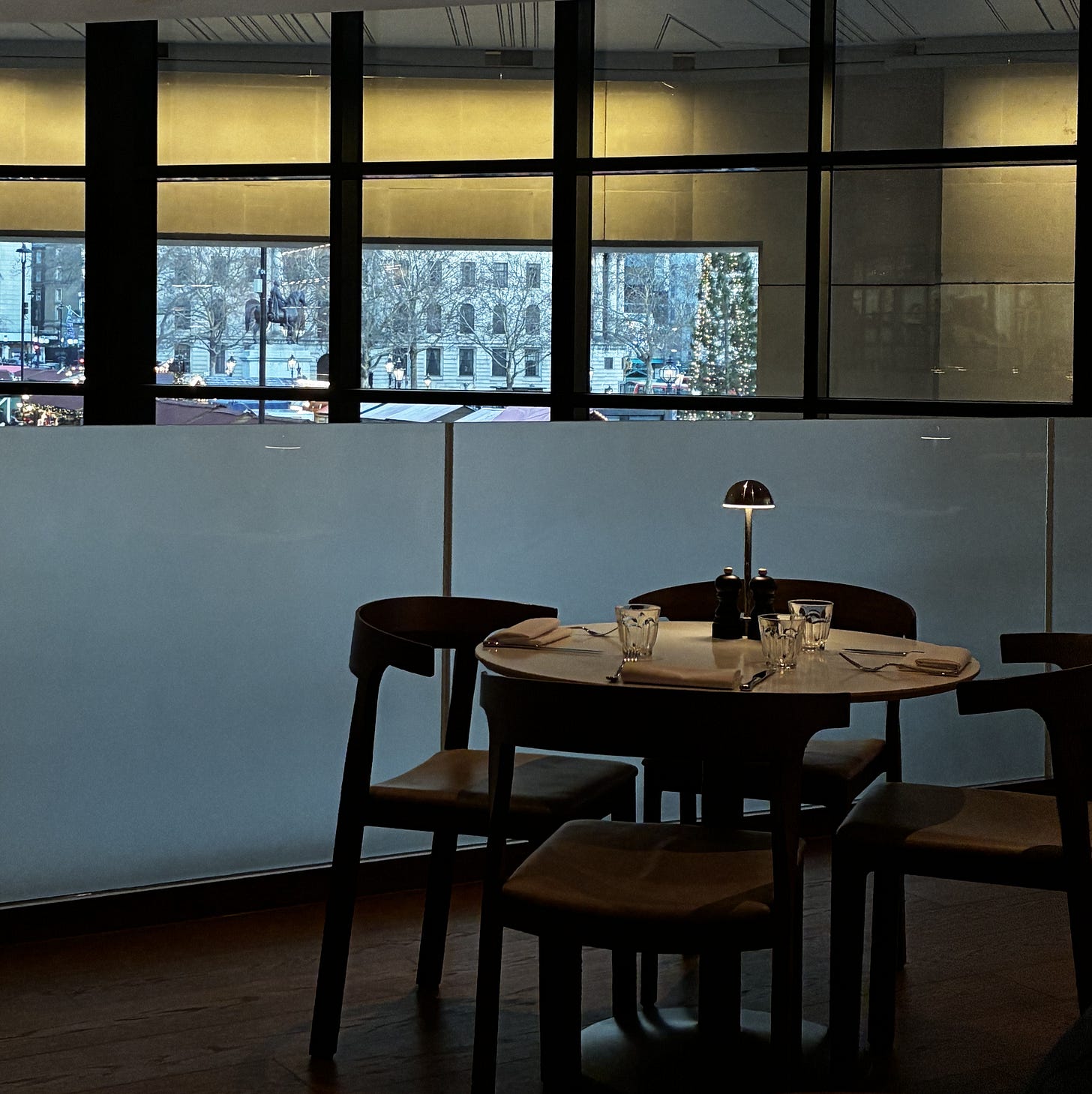 Plaxy and Giorgio Locatelli’s new restaurant has opened at the recently renovated Sainsbury’s Wing of the National Gallery, London. The renovation, led by Seldorf Architects, is a sensitive overhaul of Venturi Scott Brown’s extension to the two-hundred-year-old gallery, which includes a new espresso bar and the restaurant ‘Locatelli’, which now provides the only publicly accessible bar with views directly onto Trafalgar Square. Surrounded by pietra serena (Florentine marble) and situated below the ‘Early Renaissance’ and ‘Renaissance’ galleries, Italian cuisine is a natural choice for the flagging visitor; though many reportedly skip the galleries altogether, heading straight for the handmade pasta.