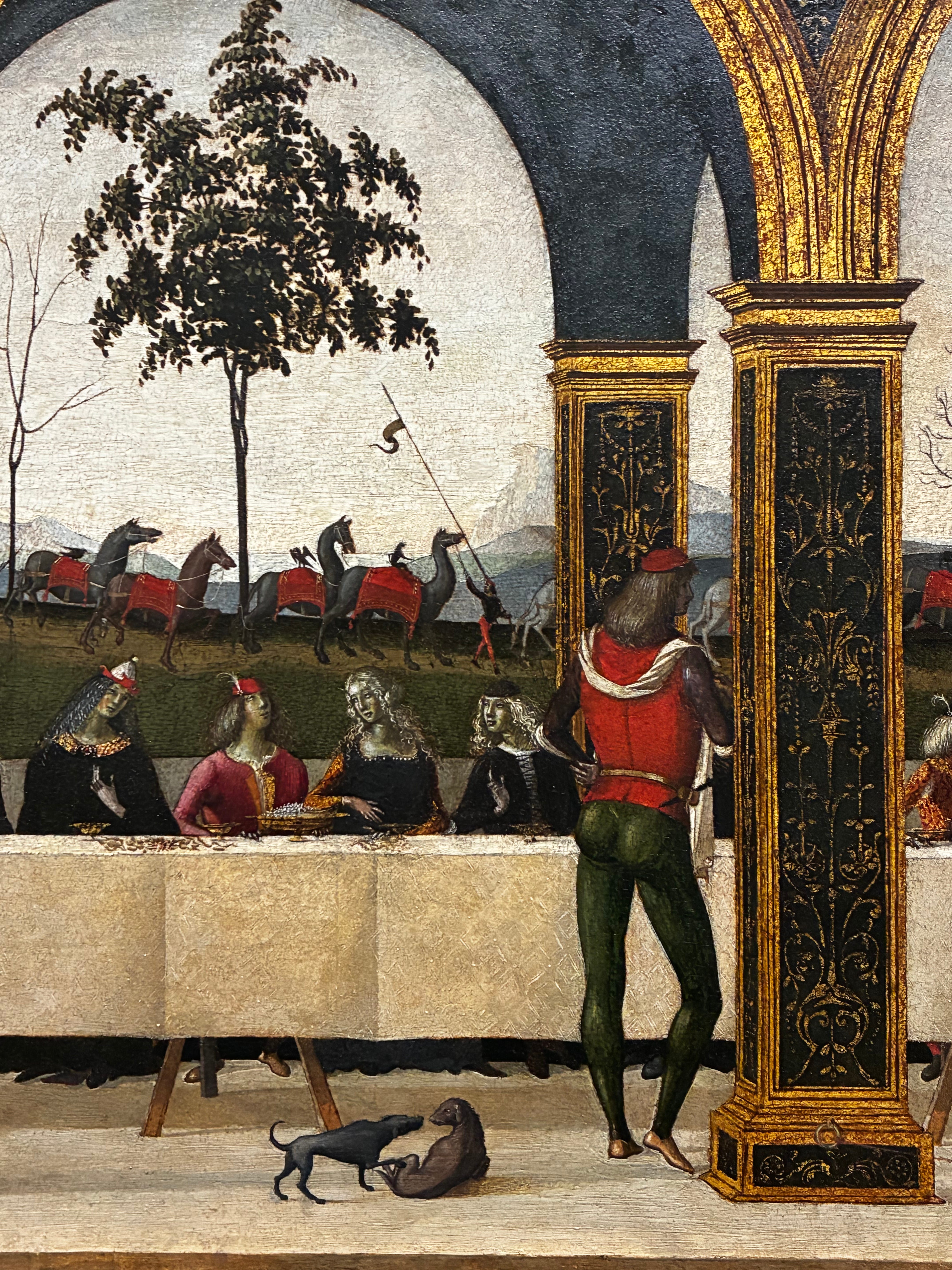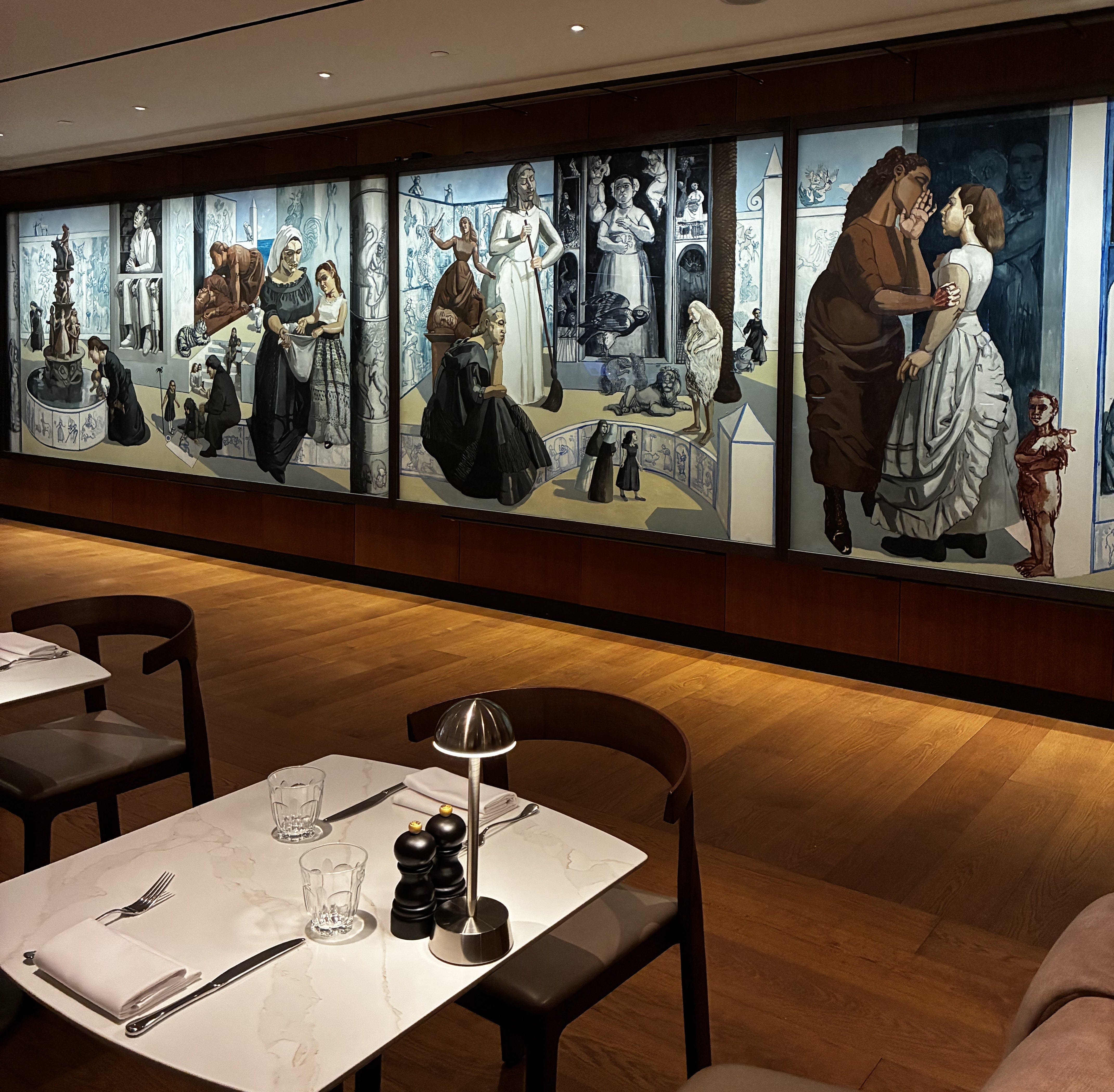 Paula Rego was the National Gallery’s first Associate Artist. She drew inspiration from looking at Renaissance paintings by Carlo Crivelli, creating the ten metre mural ‘Crivelli’s Garden’ (1990‒91) for the original Sainsbury Dining Room, which opened in 1991, and now reinstated at Locatelli.